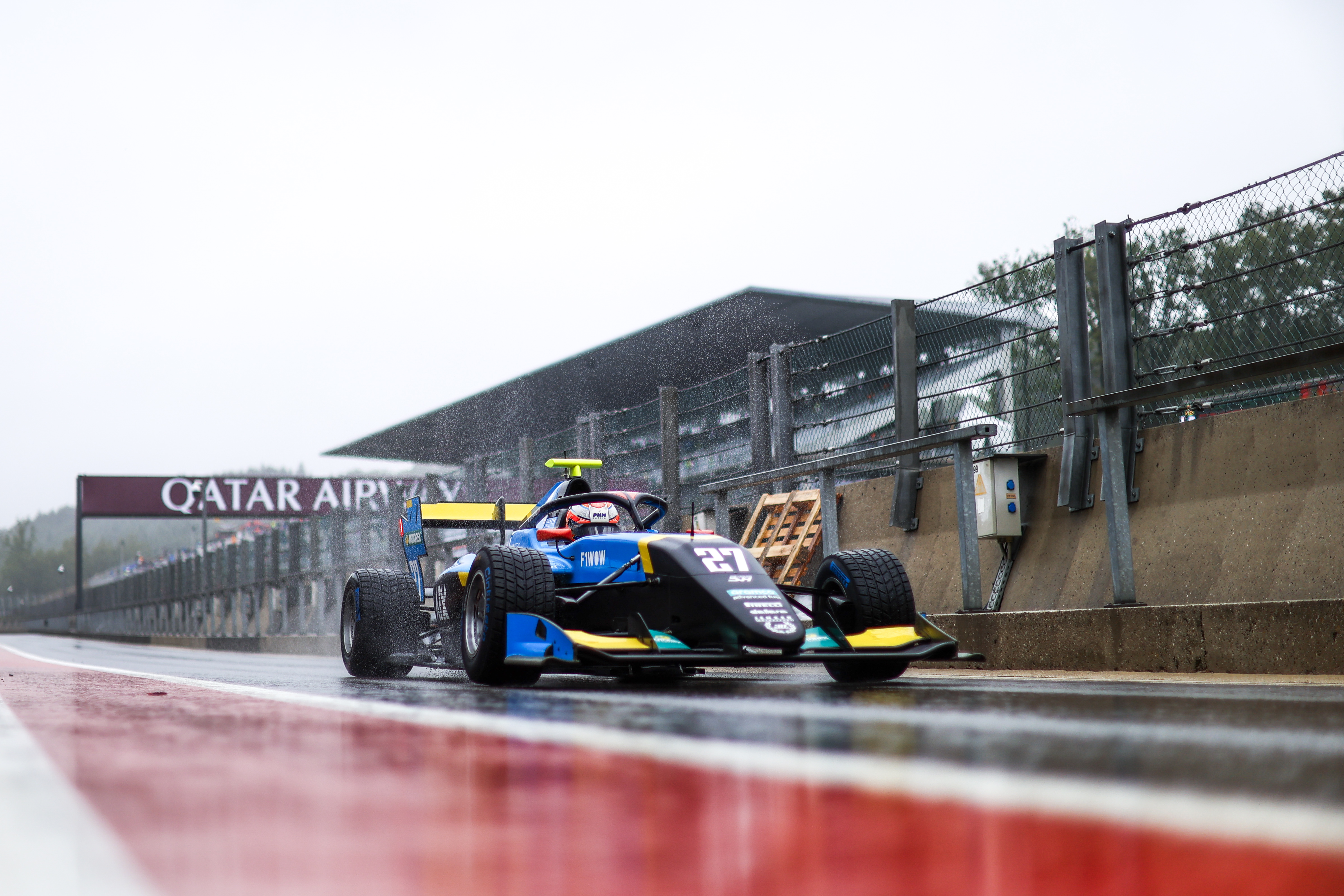 Along the Kemmel Straight he moved up to P2, passing Leonardo Fornaroli into Les Combes, then quickly taking the lead as Martí slithered around on the mediums. Barnard was up to second after opting for wets also, joined by MP Motorsport’s Mari Boya who likewise went the right way on tyres. Mansell was the biggest gainer, going from 23rd to fourth in the opening stages.