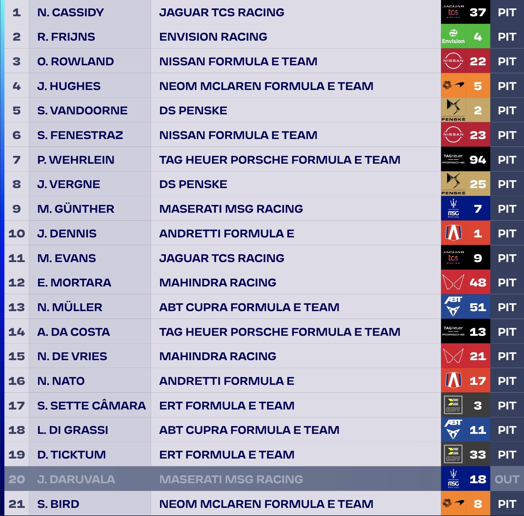 Thanks to his victory, Cassidy takes a commanding 18-point lead in the Drivers’ World Championship standings, followed by Wehrlein in second, Vergne in third, and Dennis in fourth. Jaguar TCS Racing holds a significant 29-point advantage in the Teams’ table over DS PENSKE.