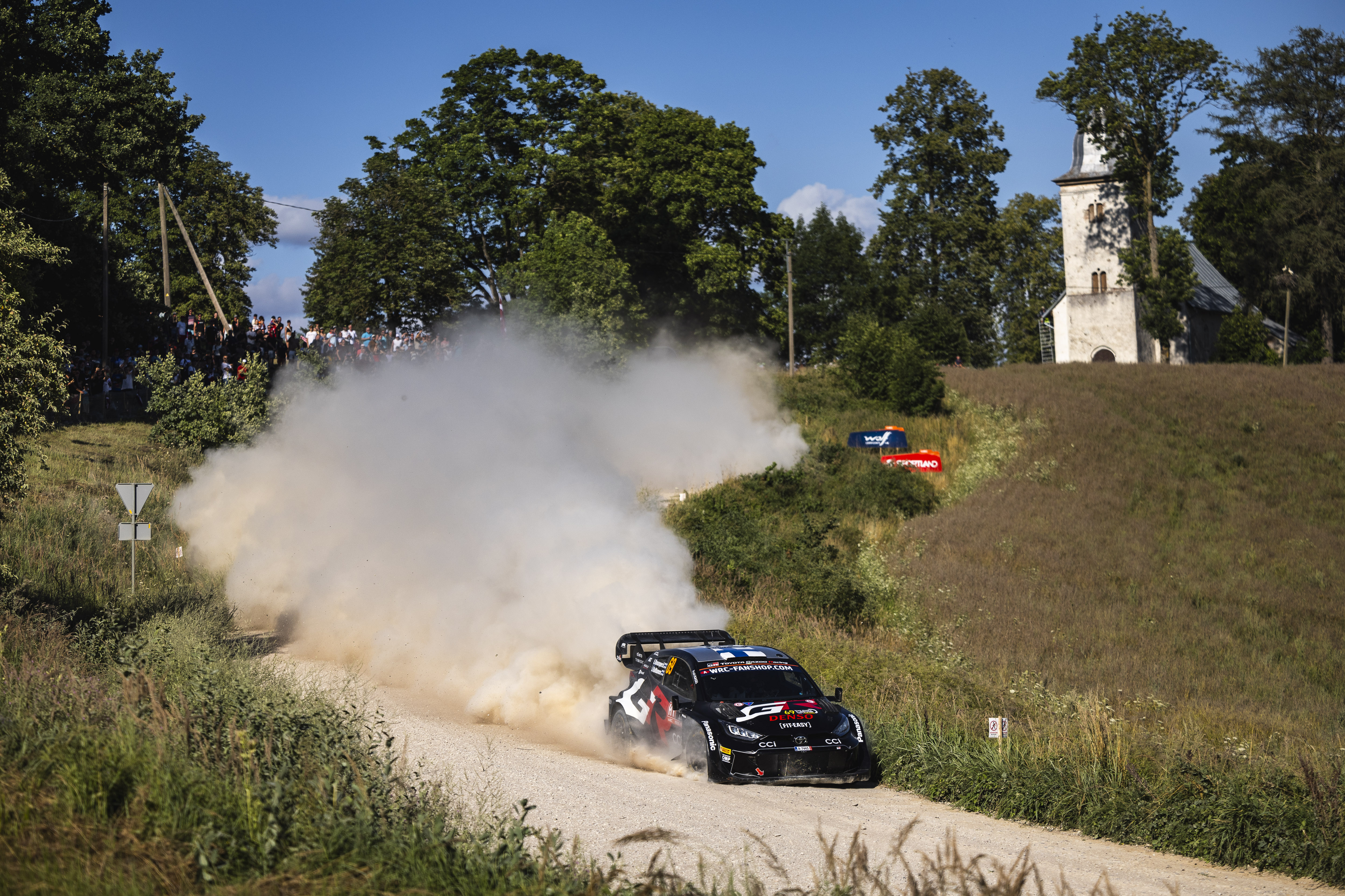 It was a milestone morning for Rovanperä as he notched up the 200th stage win of his WRC career on the sun-kissed Snepele test. His advantage climbed to 34.8sec by mid-leg service and that dominance continued into the afternoon, with the Finn topping the timesheets on all but one occasion. His Toyota team-mate Sébastien Ogier made it a GR Yaris 1-2 with local ace Mārtiņš Sesks a close third.